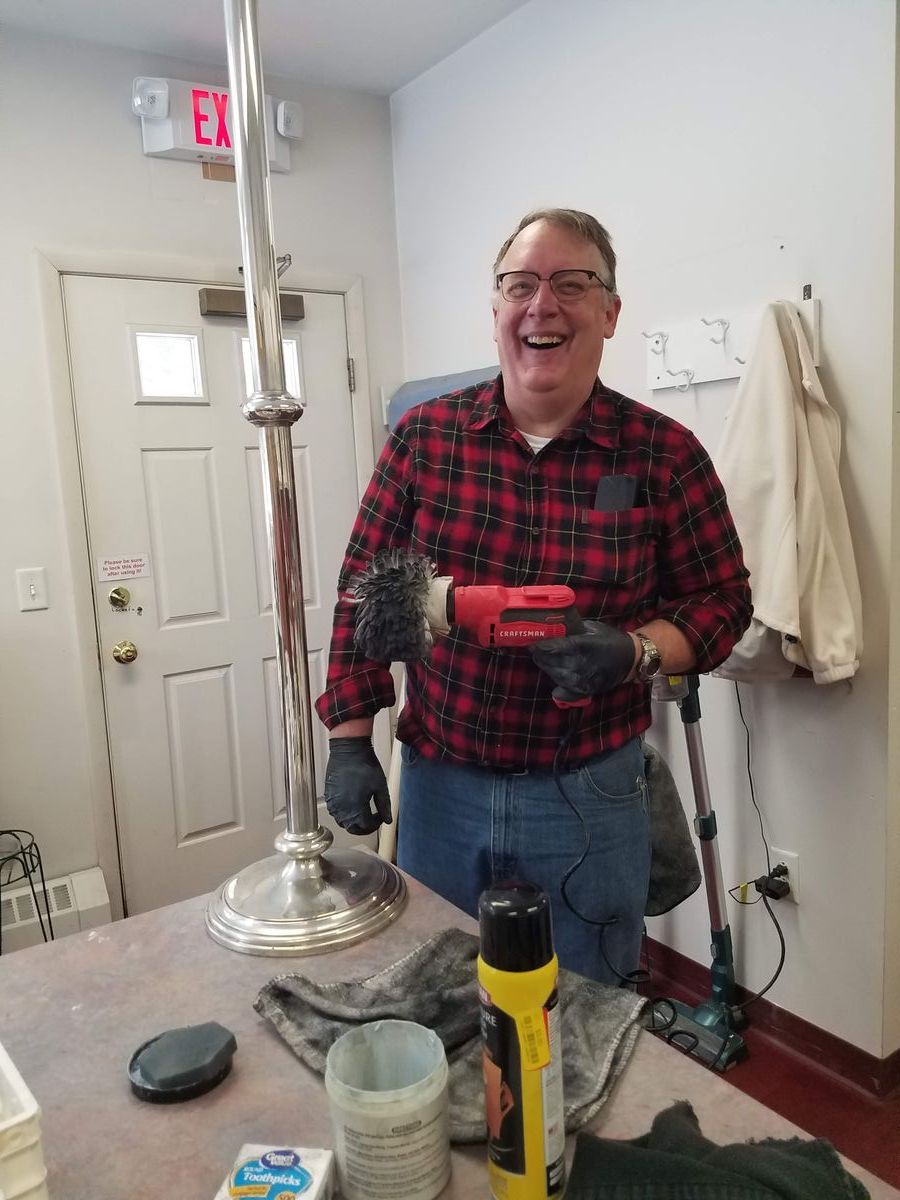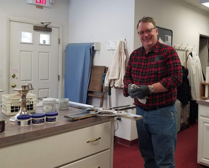 Mark polishes our Celtic cross
